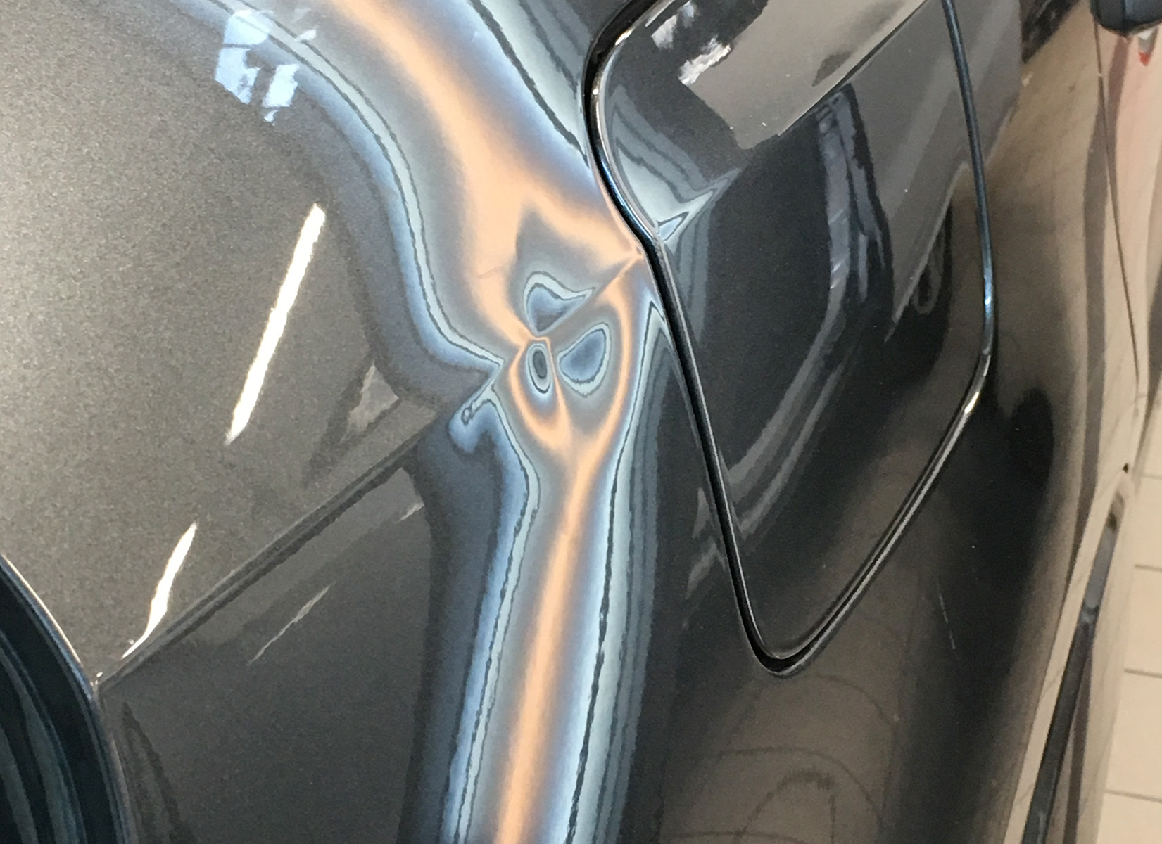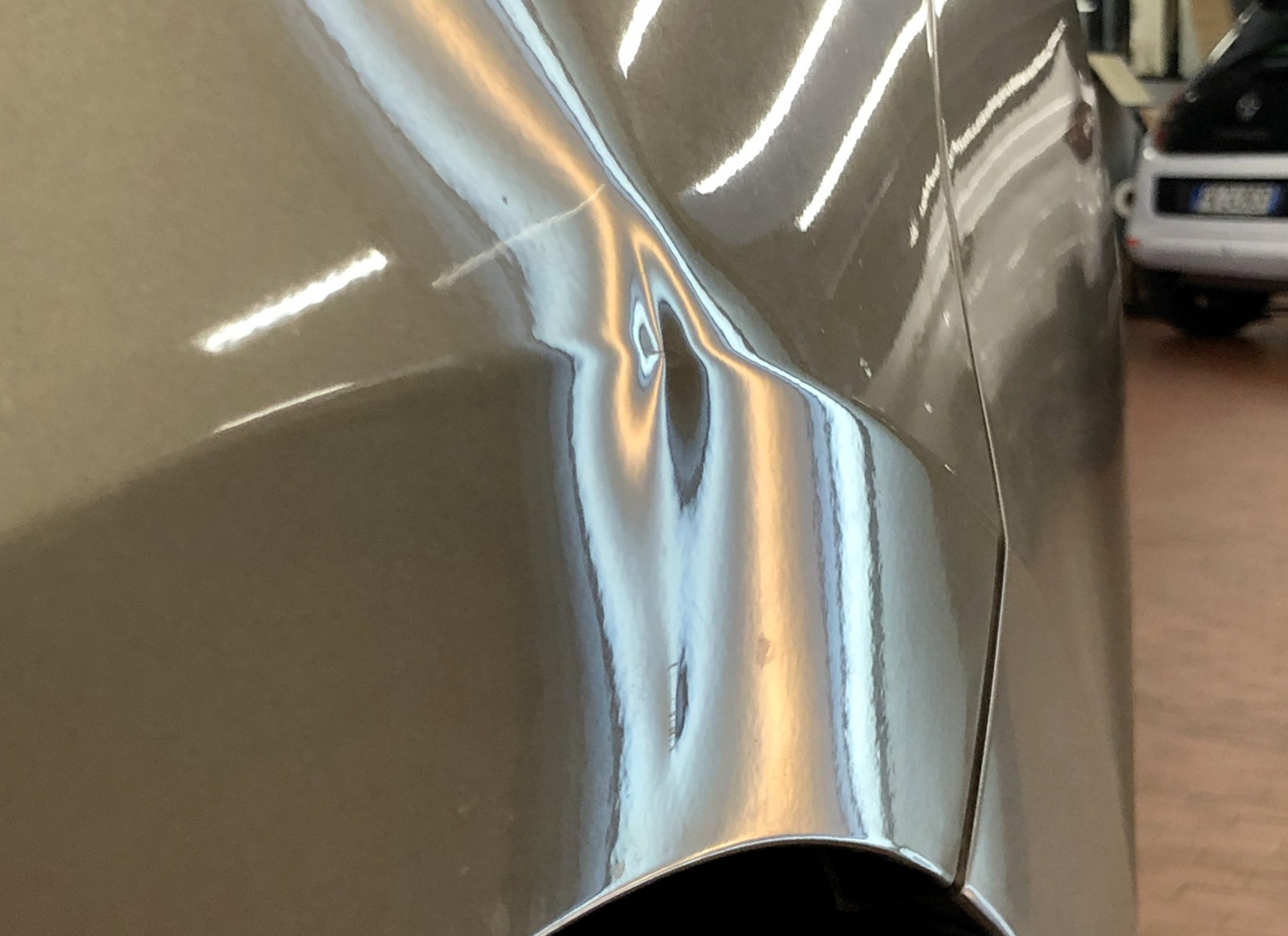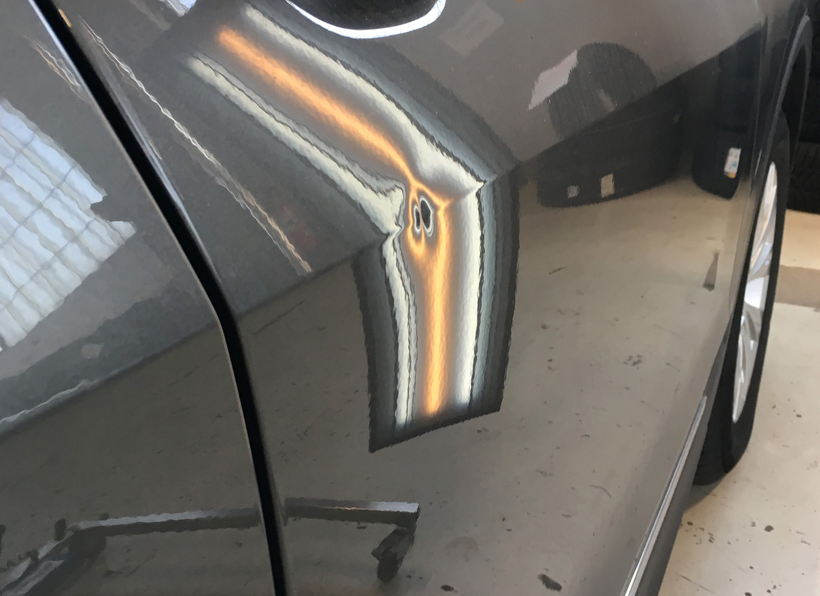 Danno provocato dall’urto della portiera dell’auto parcheggiata a fianco. Risolvibile senza alcun smontaggio del pannello portiera, mantenendo la vernice originale.