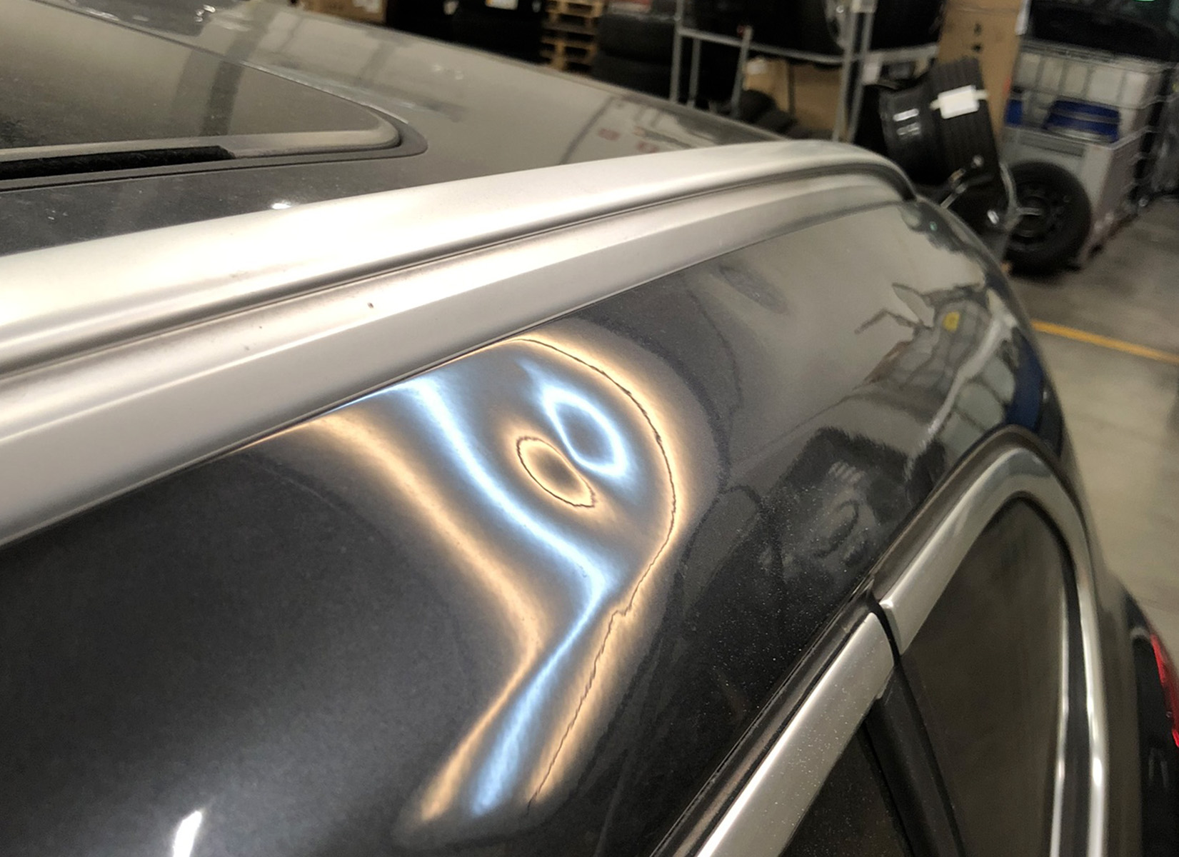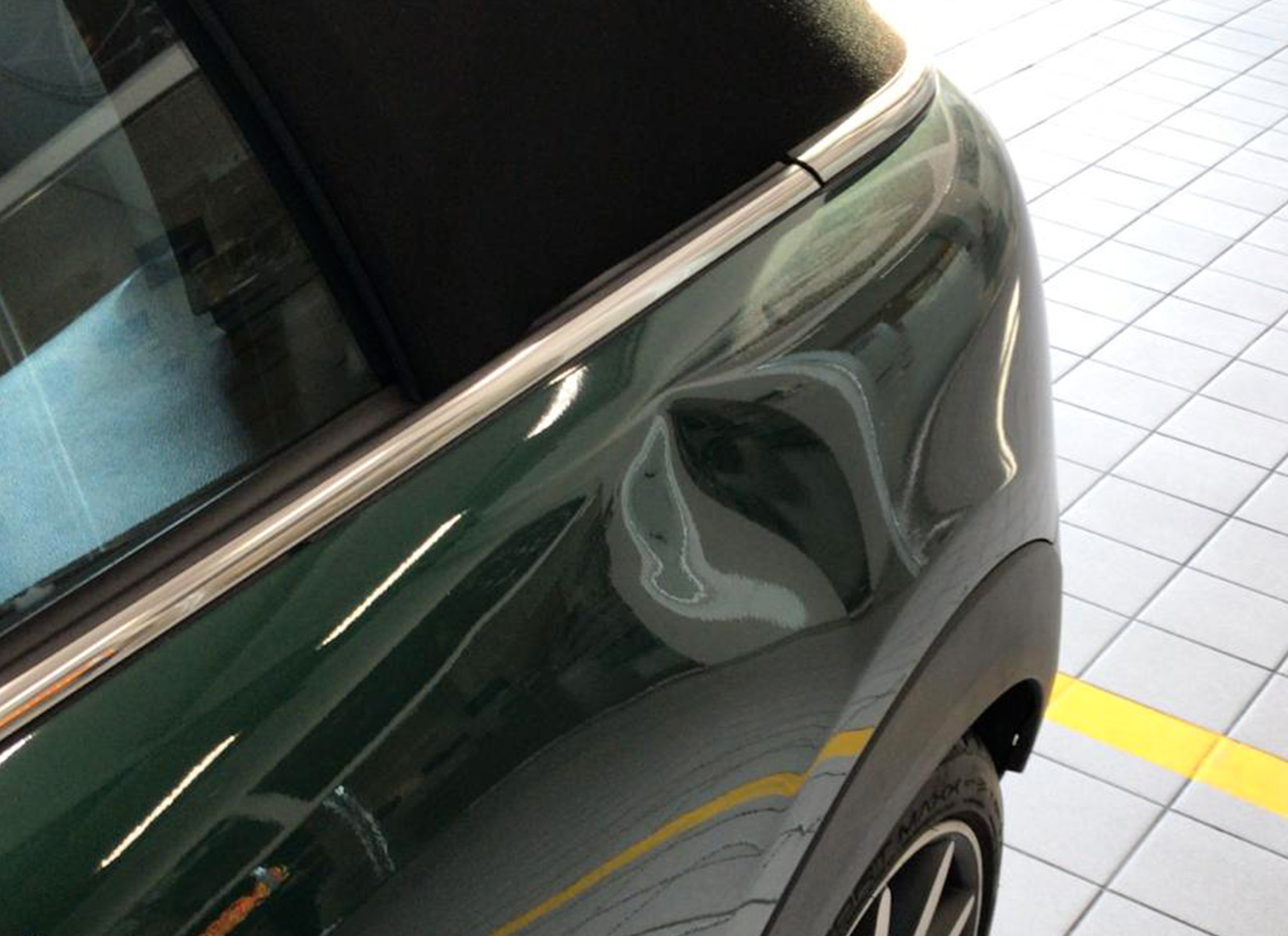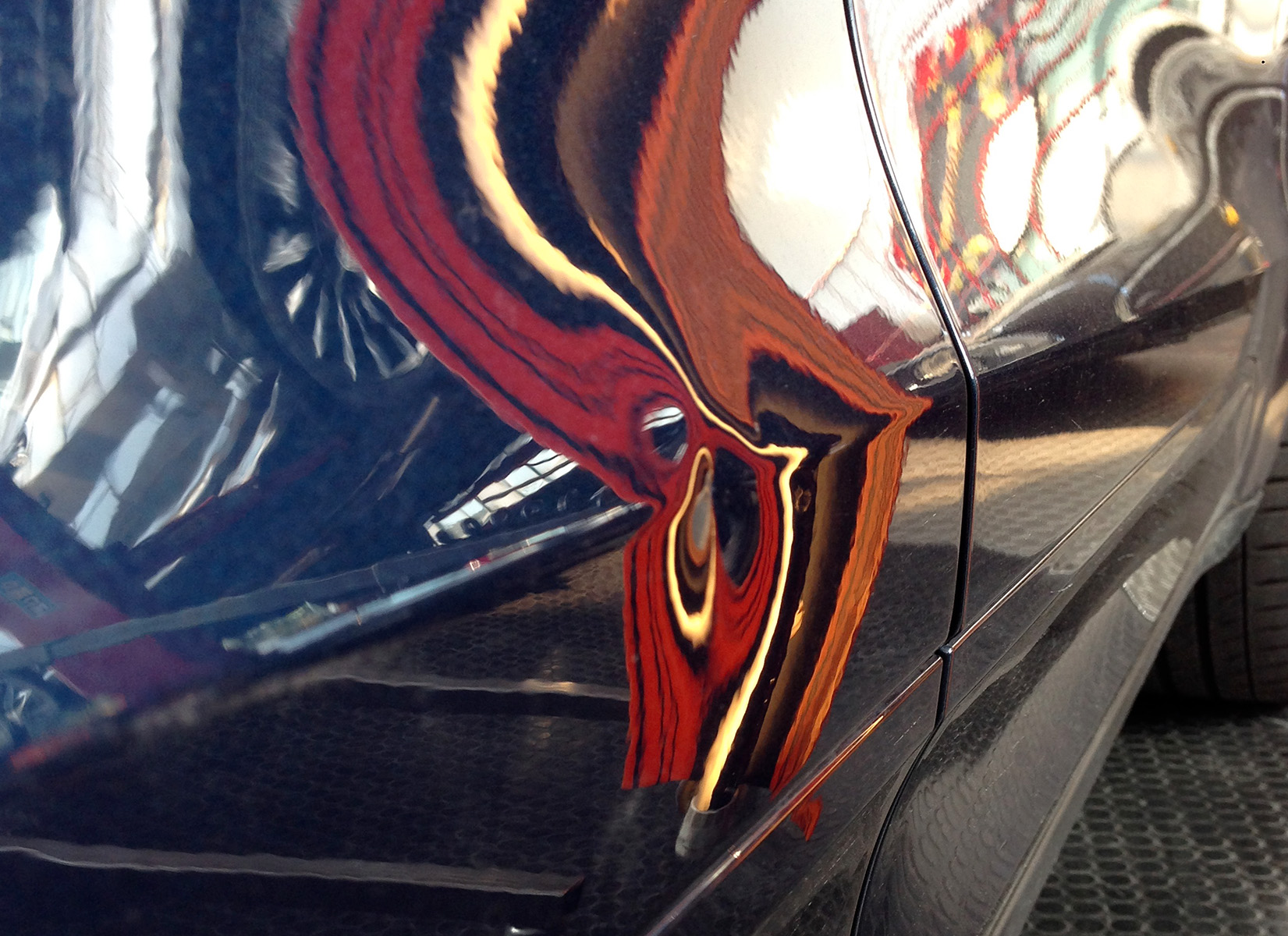 Danno provocato dall’urto della portiera dell’auto parcheggiata a fianco. Risolvibile senza alcun smontaggio del pannello portiera, mantenendo la vernice originale.